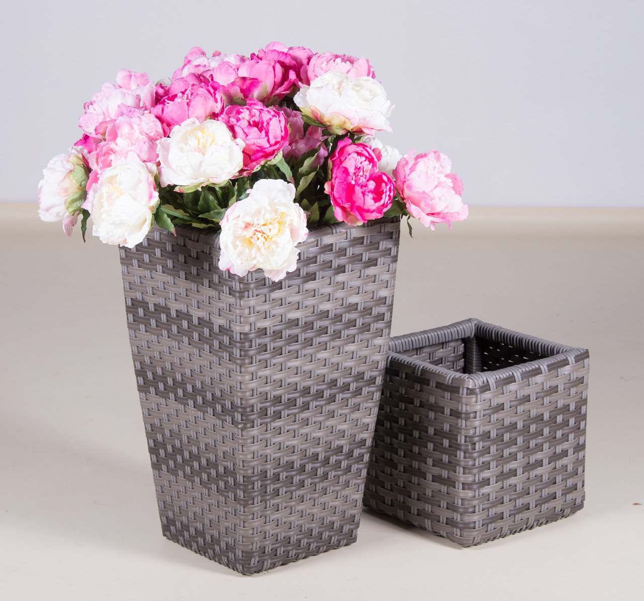 Основное достоинство, которое имеют пластмассовые вазоны для цветов – это доступная цена и маленький вес. Достижения современного химического производства позволяют создавать пластик, который внешне похож на природный материал – глину, камень и т.д. На большом расстоянии определить разницу между ними бывает довольно сложно. Такие кашпо и горшки способны хорошо удерживать влагу, не давая корням растений пересыхать. Это очень важно для влаголюбивых цветов.