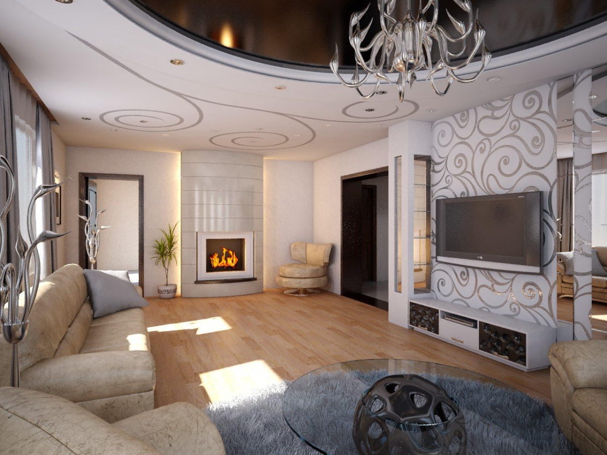 к. «съедает» квадратуру. Встроенный экономит место за счет обустройства внутри стены. В обоих случаях центральную диванную группу или дополнительную зону отдыха ориентируют так, чтобы сидящие любовались огнем. - Угловые модели эстетически очень привлекательны, в оформлении гостиной играют акцентную роль.